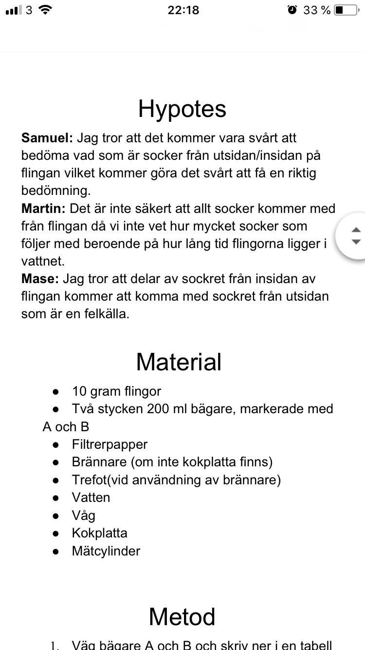 Jag har gjort en del på resultatet men förstår inte hur jag ska få det mer välutvecklat och nyanserat. Denna uppgift är individuell trots att arbetet är gjort i grupp. Jag läser Natur 1B.