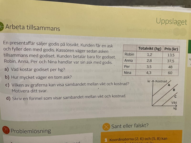 Vad kostar godiset per hg? Samband och funktioner