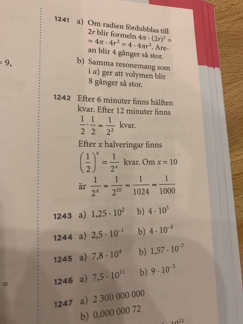 Svaret säger att det tar 10 halveringar (à 6 minuter) för att materialet att minska till en tusendel. Alltså 60 minuter.