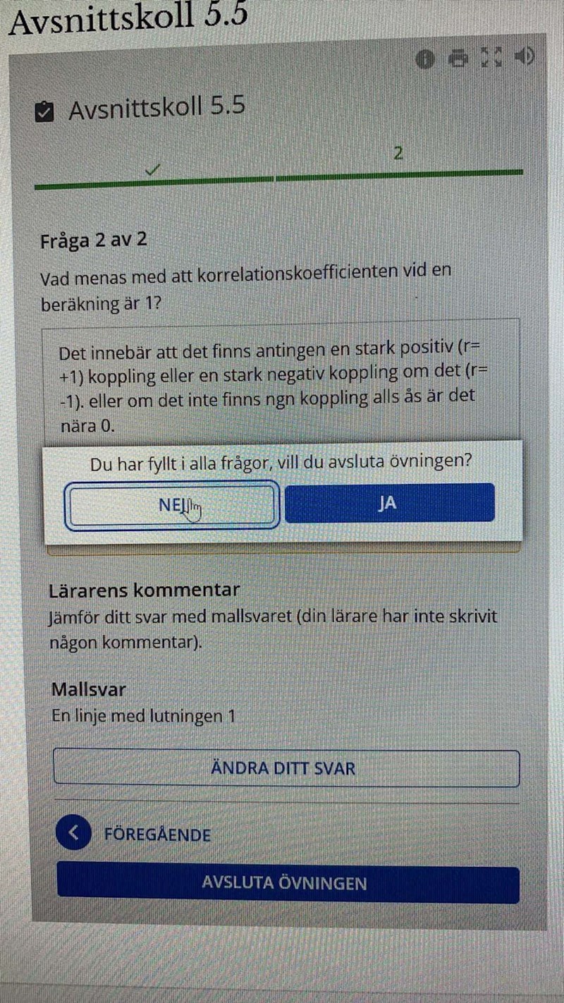 Det säger ju ingenting om att man förstått vad regressionsanalys handlar om. Har du r=1 så går det att perfekt anpassa en rät linje till dina värden. Det finns alltså en stark positiv koppling.
