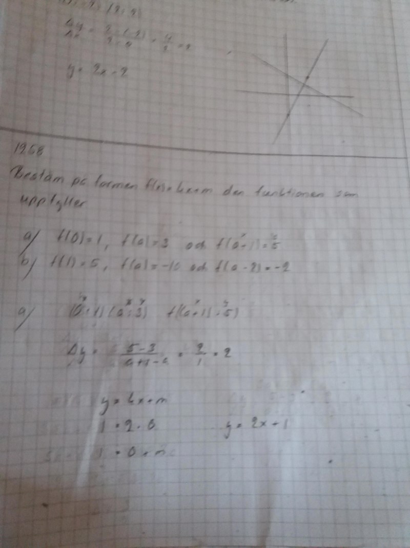 Bestäm på formen f(x)=kx+m den funktionen som uppfyller