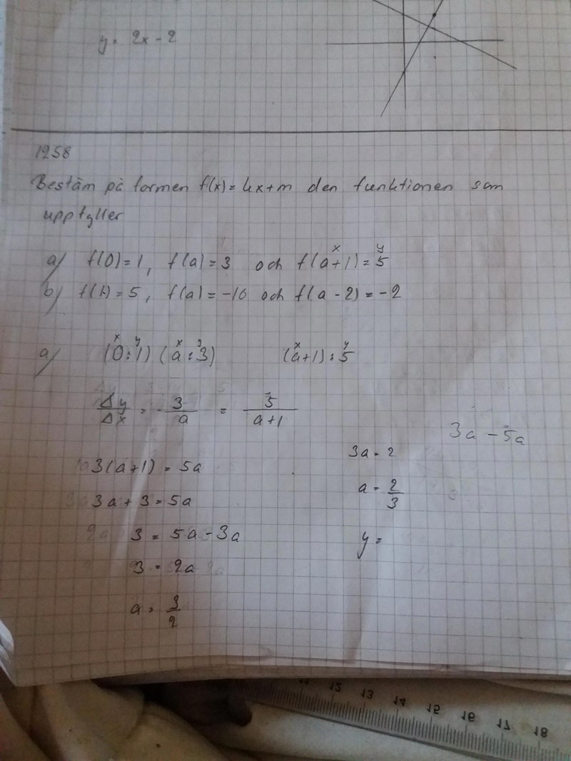Jag har lite ont i huvudet idag, men jag tror att jag ska använda a som en av punkterna, eftersom jag har tagit reda på detta och fixa till y= kx + m