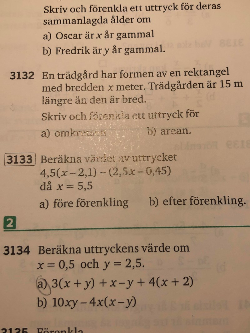 Up 3134. Jag förstår inte vad de menar med ”beräkna värdet av uttrycket före förenkling” och sen ”efter förenkling”. Vad menar de? Vad ska man göra?