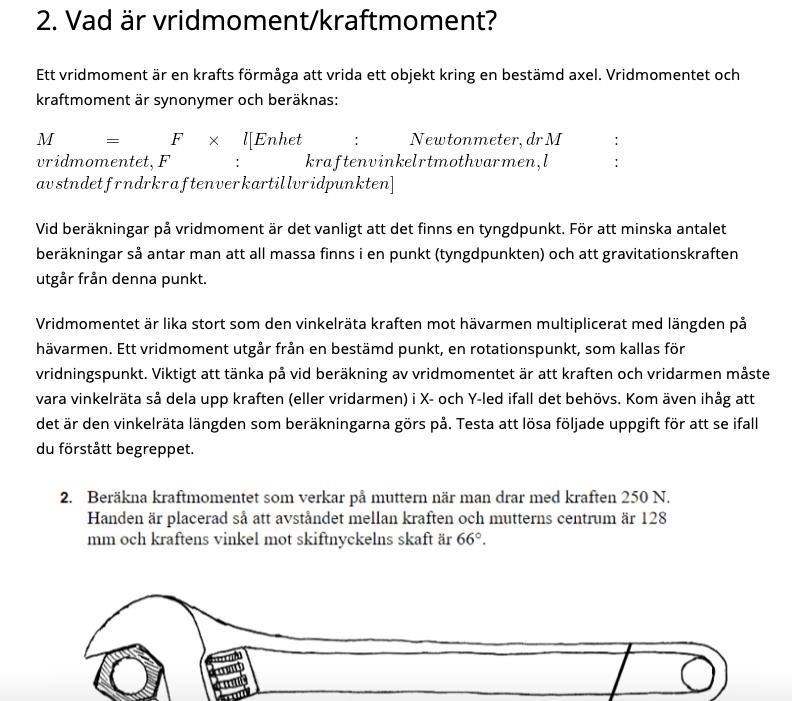 Vridarm som det står menar dom F eller l i formeln? Alltså kraften eller hävarm som dom syftar på?