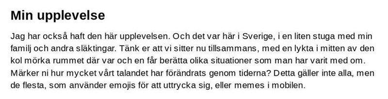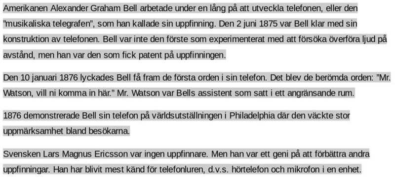 Vad tycker ni? Jag har inte renskrivit texten, bara skrivit de som kommer till huvudet till pappret. De grå markerade stycken fakta delen, och det känns som om det inte passar in i den nedre delen av texten. Vad ska jag göra?