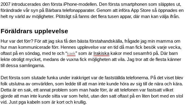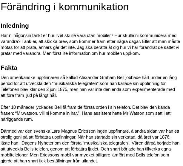 Jag skriver om förändring i kommunikation. Och fick med mina föräldrars upplevelse som förstahandskälla. Samt mina åsikter med upplevelse. Men vad för fakta passar in? Kolla här: