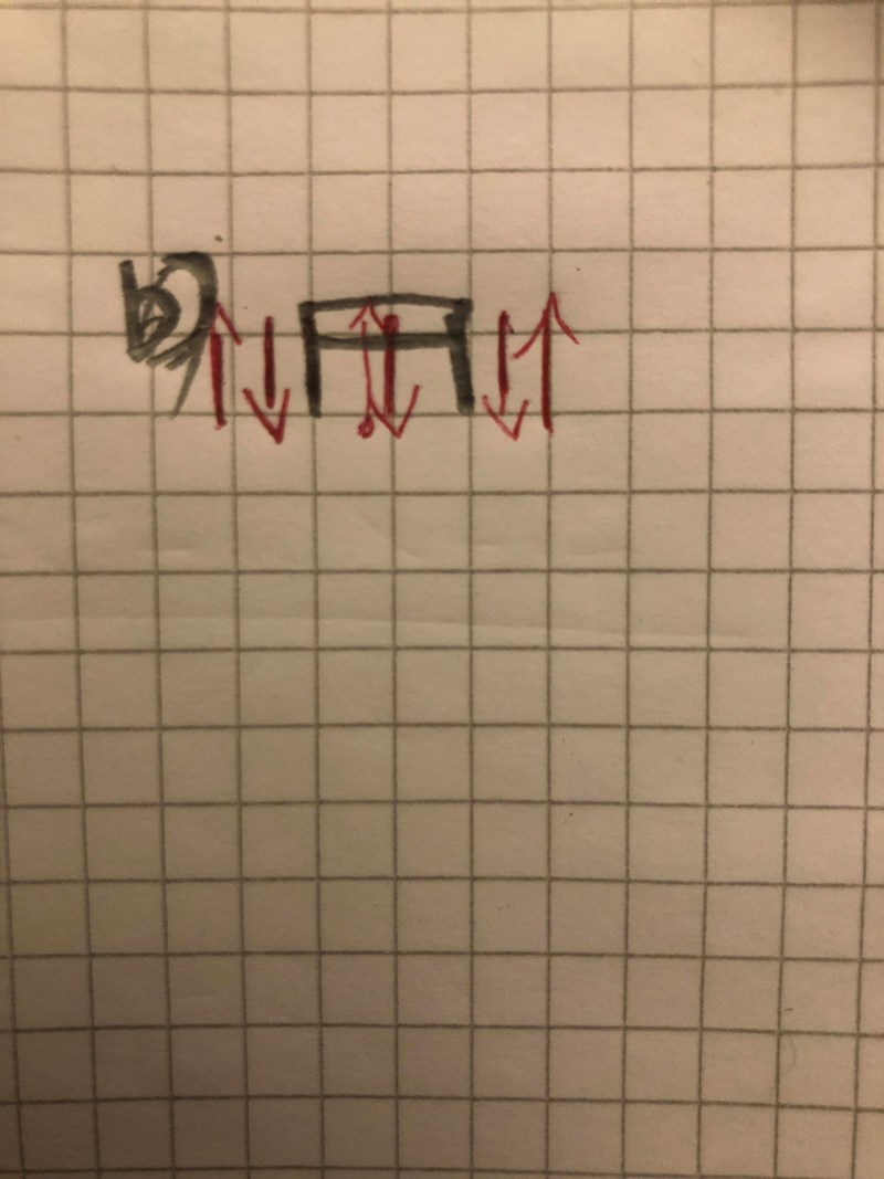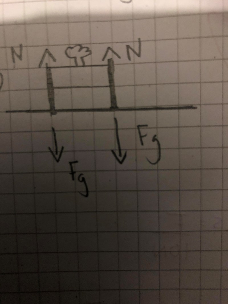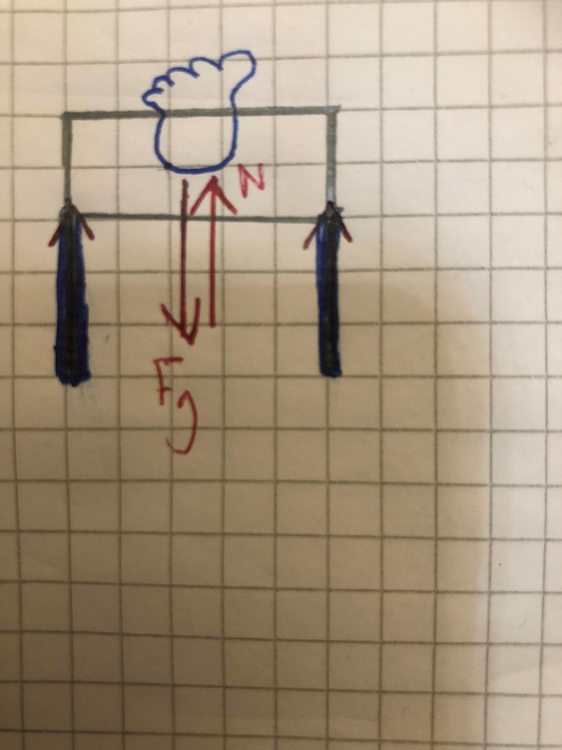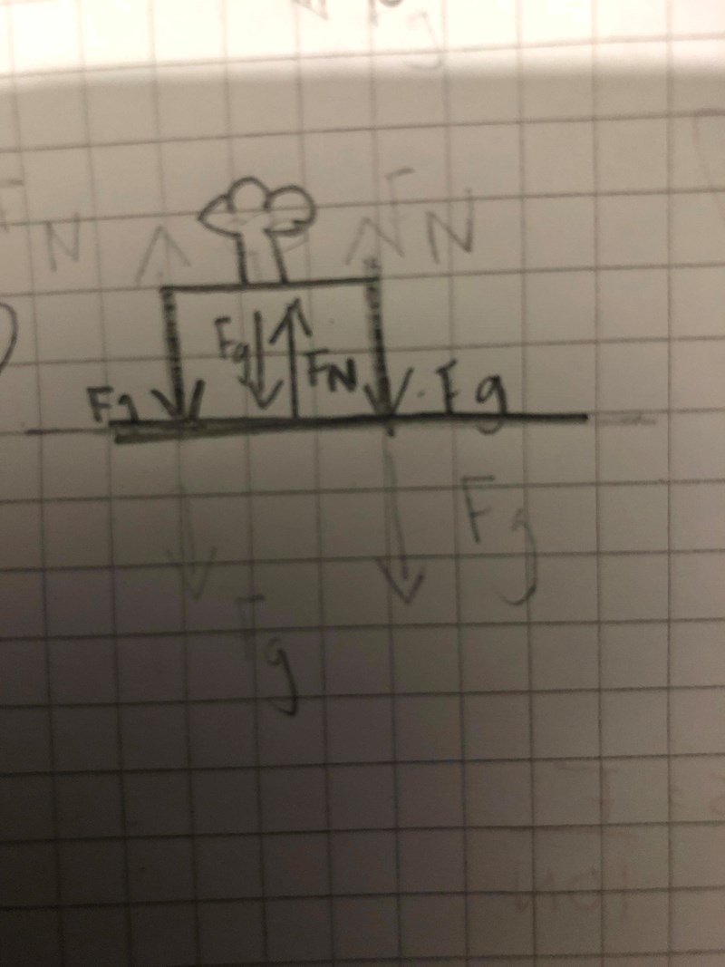 Jag har ritat ut pilarna för de krafter som verkar. Men vad ska jag kala krafterna för? Hur ska jag heta vilket namn? Räcker det med att kalla krafterna som går uppåt för normalkraft och krafterna som går ner för tyngdkraft/ gravitationskraft?