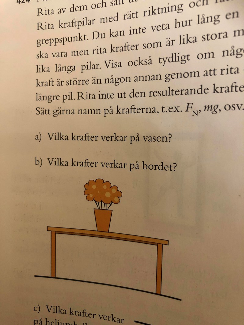 Var finns t ex kraften som blomvasen påverkar bordet med?