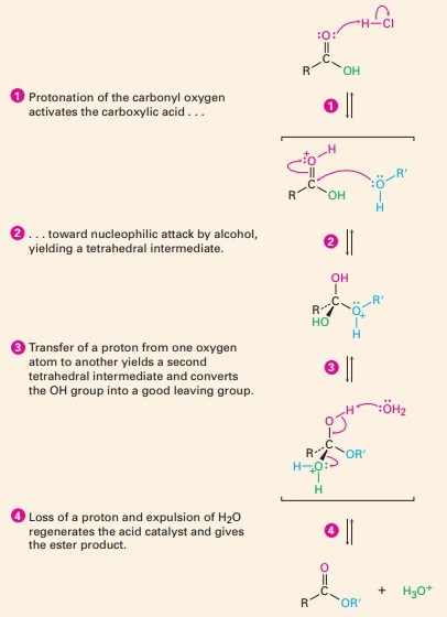 Känner du till mekanismen för estertillverkning från karboxylsyra och alkohol?