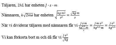 Vad blir enheterna då, tänkter att enheten under rottecknet blir kg*J men ändrar rottecknet enheten