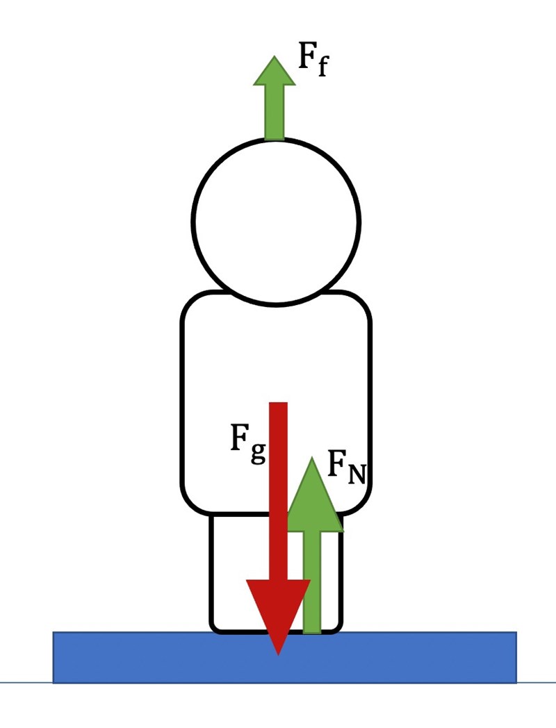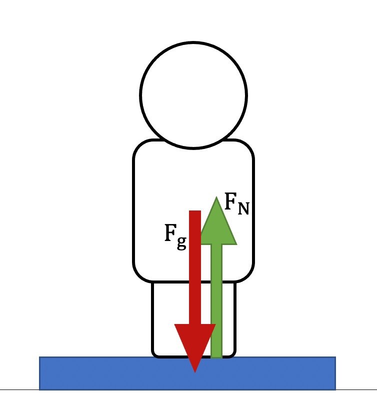 Det är normalkraftens storlek som vågen mäter, då vågens egen fjädring är det objekt som ger upphov till normalkraften.