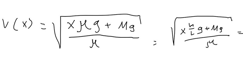 Jämför med den konstanta hastigheten om man försummar ändringen av spänningen till följd av repets egen tyngd.