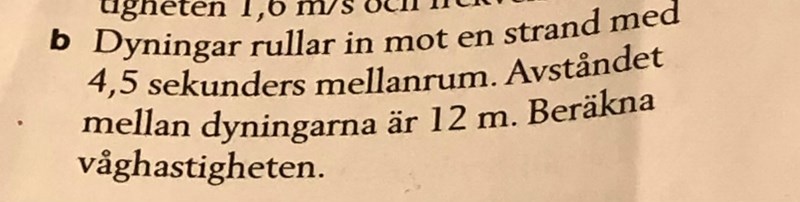 Nu när du vet våglängden och frekvensen kan du väl beräkna våghastigheten?