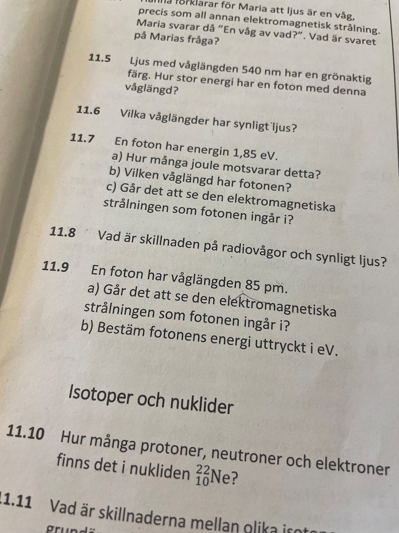 Det finns en formel för fotonens energi som funktion av frekvensen (har du våglängden kan du lätt räkna ut frekvensen)