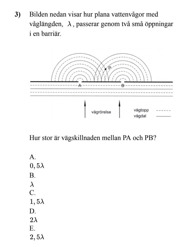 osv. Hur hittar vi den heldragna nodlinjen på denna bild? Och hur ska man räkna våglängderna så att svaret blir rätt?