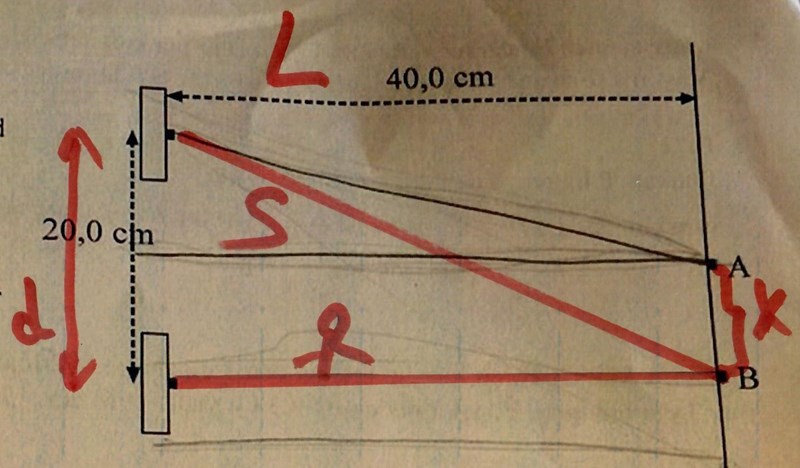 förstår inte riktigt vad första ordningens max är. avståndet AB måste väll vara precis en våglängd? kan jag inte ta vägskillnaden från s och r och sedan sätta k=1 och därefter beräkna x som då är våglängden?