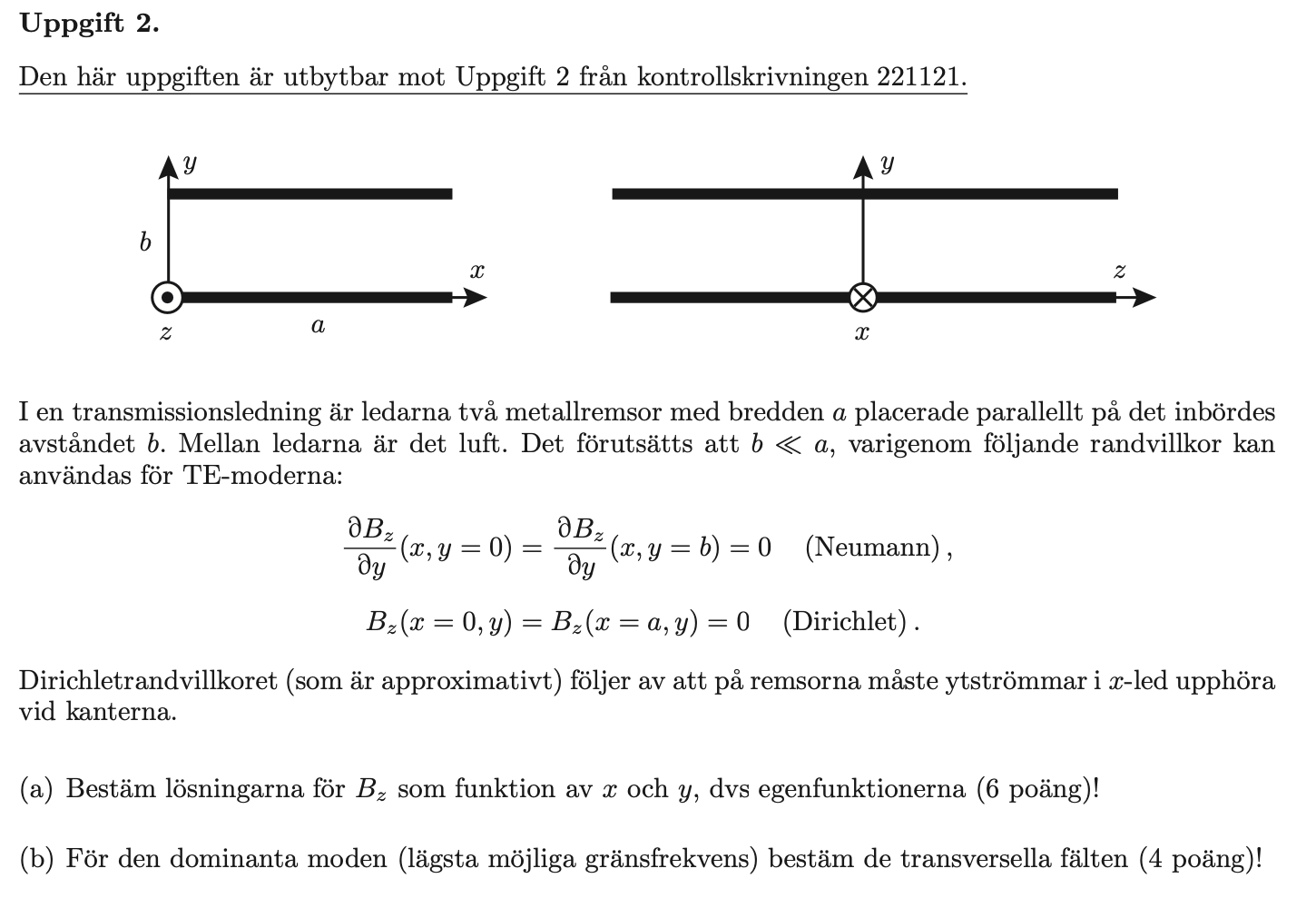 Olika randvillkor i riktning mellan remsorna (det parallella E-fältet vid plattorna måste vara noll) och på bredden.
