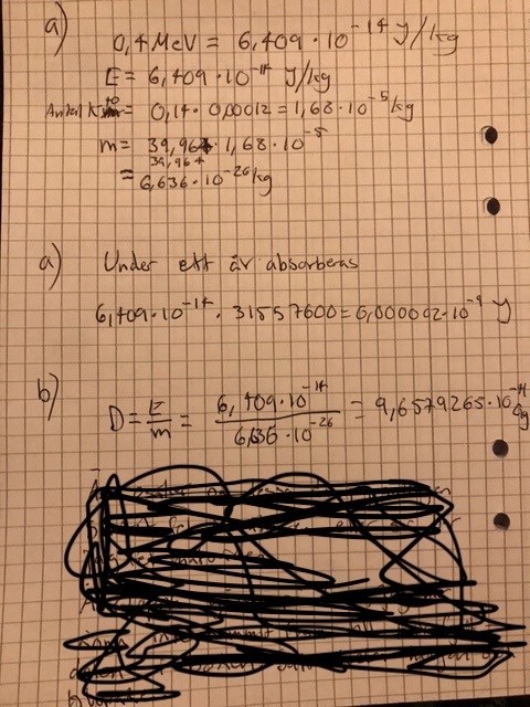 Vägledning gällande uppgift om betastrålning. D=E/m