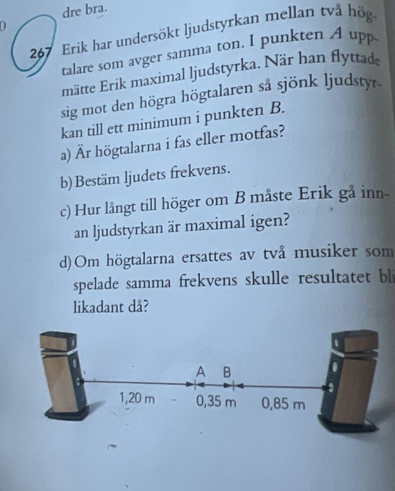 Bubo skrev:Inte alls. Du ska hitta en annan punkt där ljudstyrksn är maximal.
