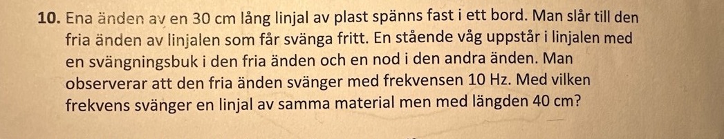 Om du har en buk i ena ändan och en nod i andra ändan så har du 1/4 våg i linjalen.