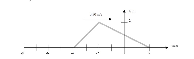 En vågpuls rör sig på en sträng med hastigheten 0,50 m/s. Pulsens utseende vid tiden