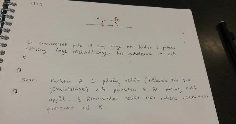 Undrar varför utbredningsriktningen för punkten B är uppåt och inte nedåt mot jämviktsläget som punkten A?