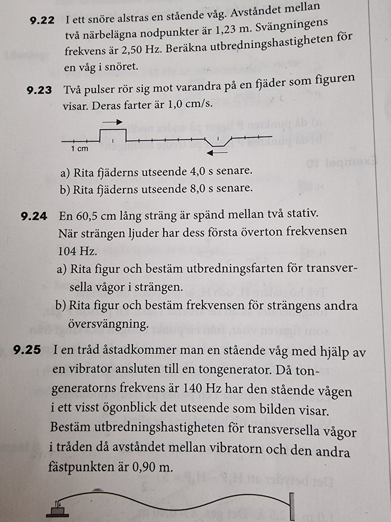 Det är uppgift 9.24 a jag behöver hjälp med. Jag får dubbelt så stor hastighet som svaret, men förstår inte vad för fel jag har gjort.