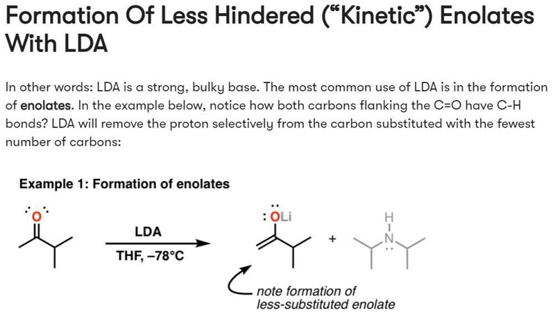 " LDA has been shown to deprotonate the methyl group, which is the kinetic course of the deprotonation"