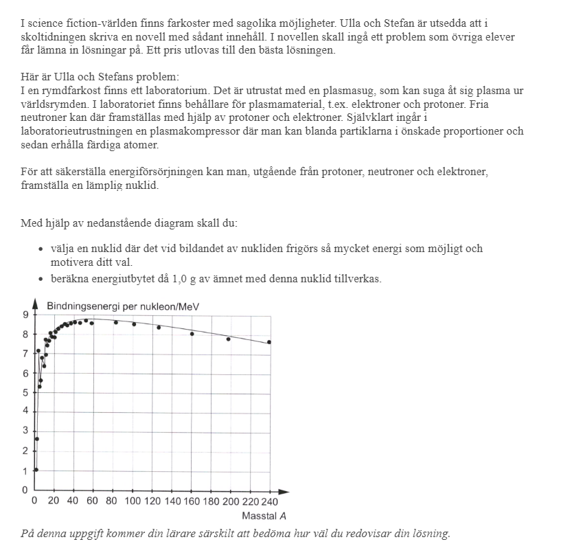 • välja en nuklid där det vid bildandet av nukliden frigörs så mycket energi som möjligt och motivera ditt val.