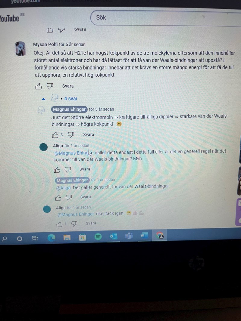 Att Magnus påstår att det endast är Wdw-bindningar, är det för H2Te?