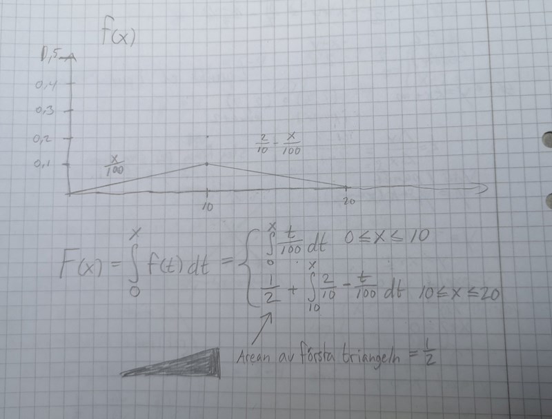 När den är 10<x<20 så är mitt F(x) = . Vet ej om det är rätt men det är så jag har tänkt.