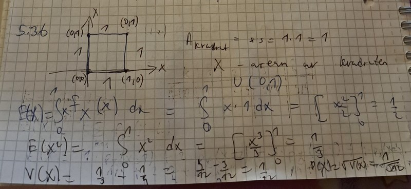 Rätt svar på standardavvikelse är 1/12 men jag får inte rätt svar och vet ej vad jag har missuppfattat.