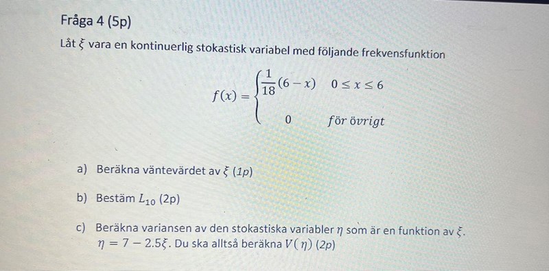 c) Först ska jag väl beräkna variansen, V[€], sedan sätta in V[7-2.5£] = V[2.5•€]