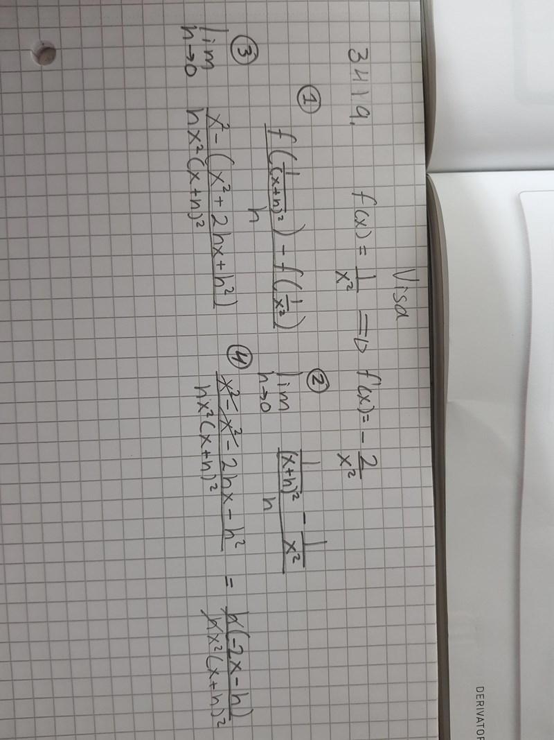 Visa med hjälp av derivatans definition att f(x)= 1/×^2 f'(×)= -2/×^3