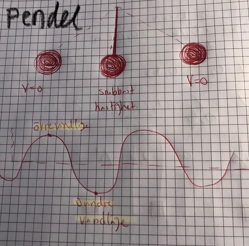 Jag vet att där hastigheten är noll är vi i en maxipunkt (övre vändläge) eller minipunkt (under vändläge). Men jag vet inte vilken som är vilken gällande vart pendeln är.