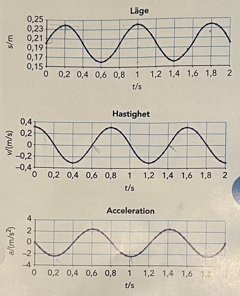 Det finns ju en graf av hastighet som funktion av tid: 0,3 m/s vid t=0, t=0,8 s, t=1,6 s.