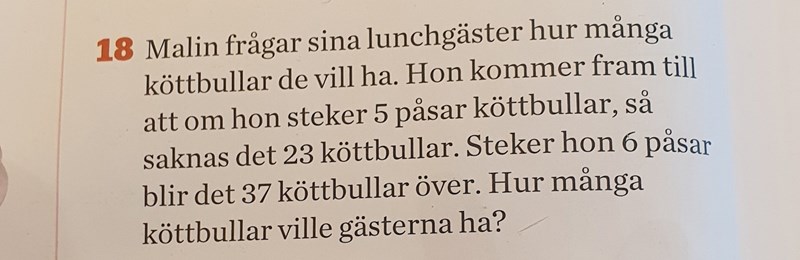 Anta att det finns x stycken köttbullar i en påse. Då finns det stycken köttbullar i 6 påsar.