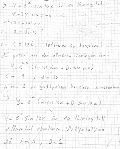 Visa att är en lösning till differentialekvationen