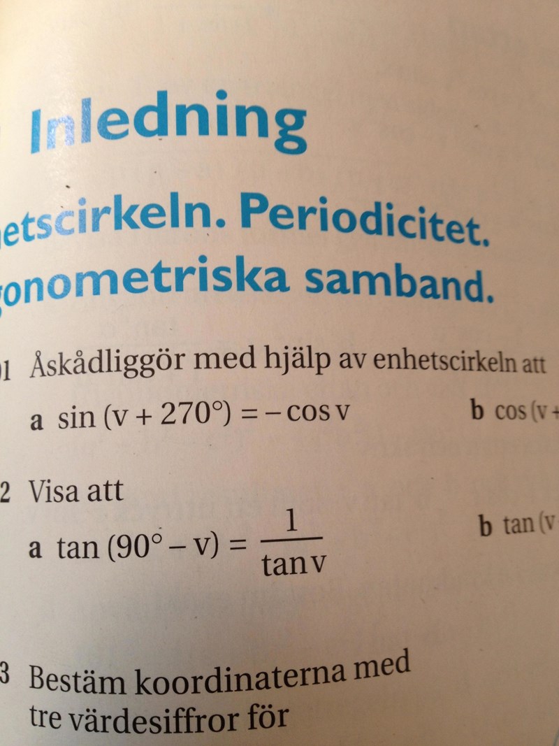 Om cos(v) = 0,5 så är -cos(v) = -0,5