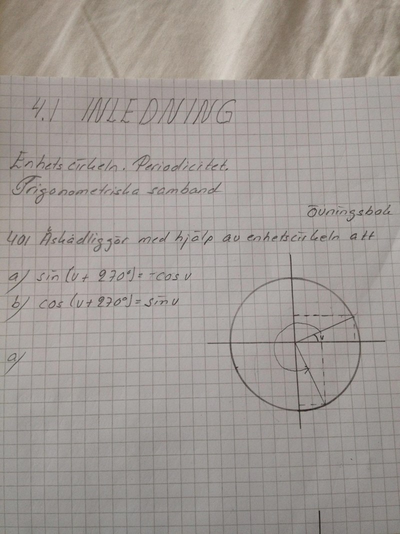 Jag har ritat en enhets cirkel här. Jag undrar, var hittar man den här - cos v.