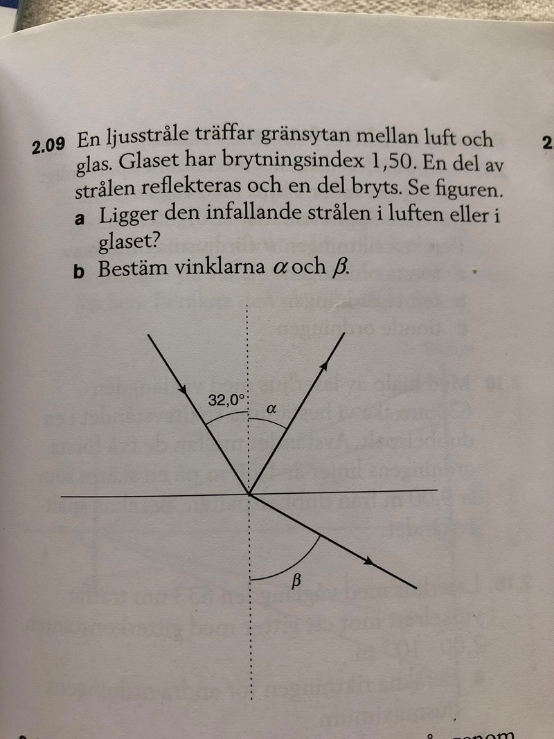 och när man ska räkna ut beta, så har de räknar med 1sin(beta) precis som om beta låg i luften, men borde det inte vara 1,5sin(beta), för glaset är väl därnere? Eller hur vet jag vad som är vad?
