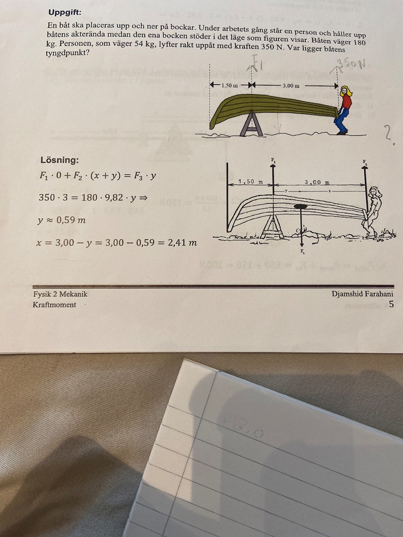 jag förstår lösningen till frågan men en sak jag inte förstår är om jag tar 1.5+0,59 så får jag 2.09 m men tyngdpunkten ska ligga vid 2,41 m.