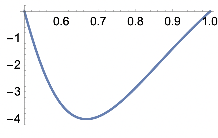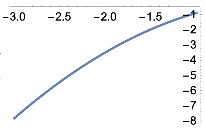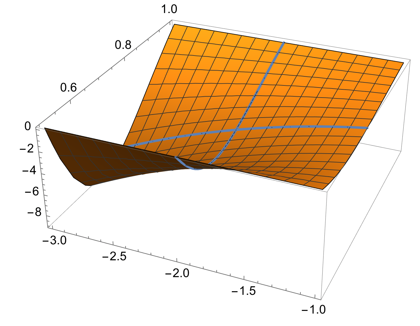 Vi ser att den växer i båda "kors-riktningar" i punkten (-2,3/4)