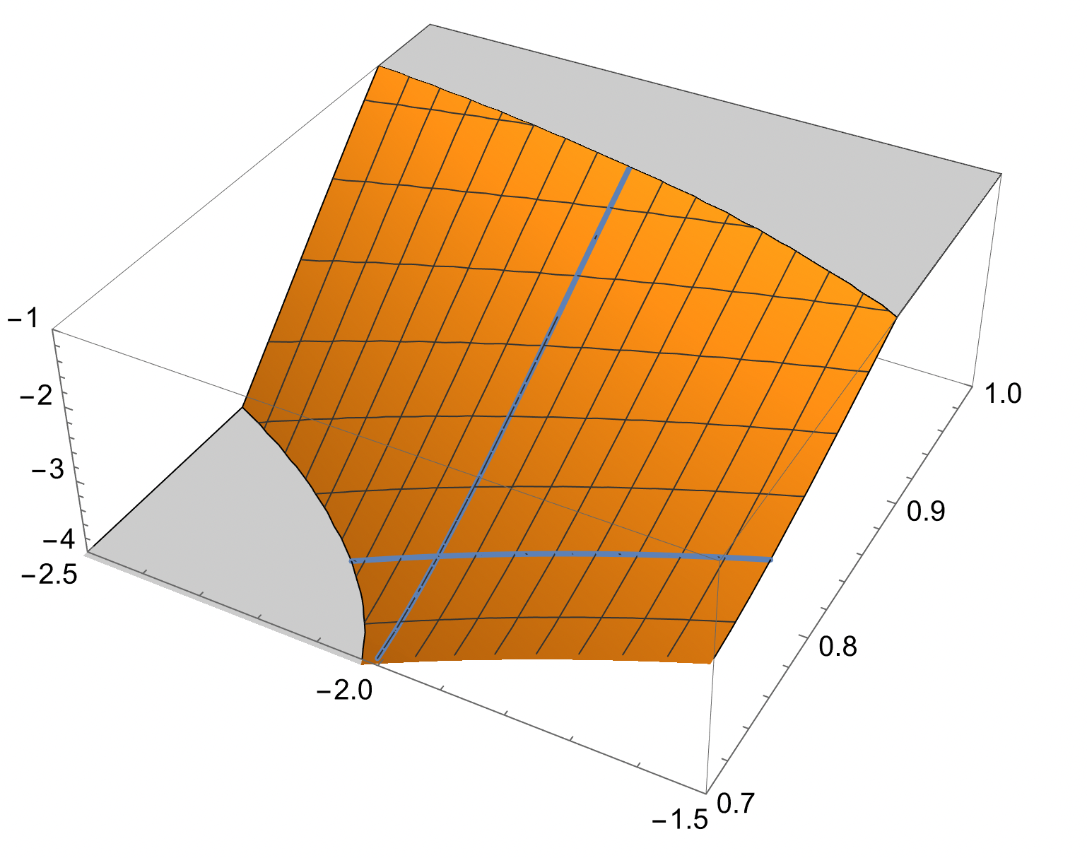 a) Fixera y=3/4 och studera när x varierar, t.ex. på (-3,-1)