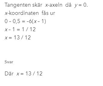 Hej! Jag förstår inte riktig vad menar dem med "Var skär tangenten x-axeln?" :