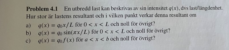 Hej! Hur ska jag tänka för att räkna ut var resultanten verkar? Q är resultanten, vilken jag får fram genom att integrera q(x) över hela ytan. Längden av ytan kallar jag L.