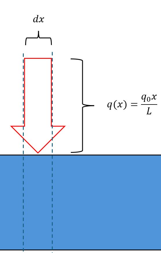Kraften på längdelementet blir enligt figuren , och totala kraften blir därför