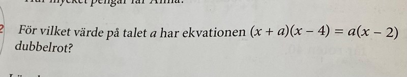 För att ekvationen ska ha en dubbelrot måste värdet under rottecknet (diskriminanten) vara 0!