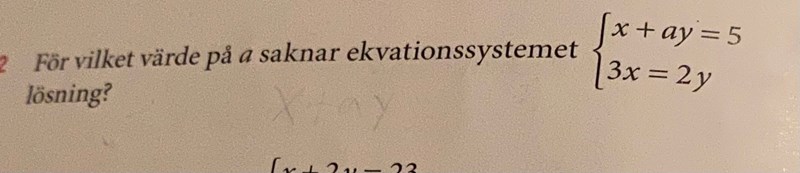 Lös ut x och y som vanligt, sedan kanske du kan se vilket värde på a som orsakar så att...