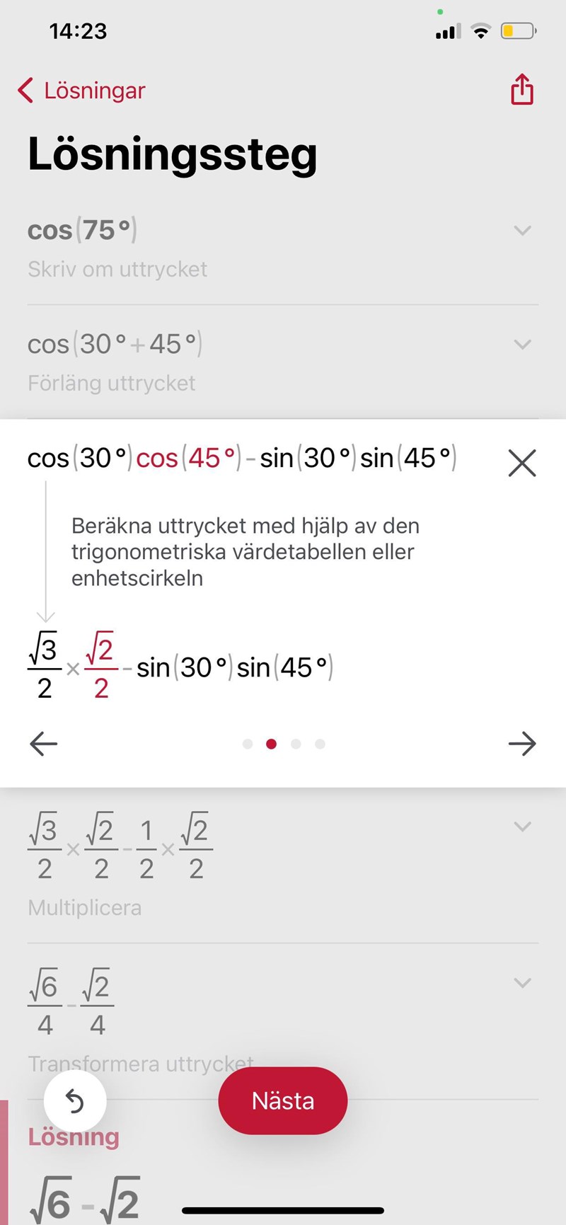 Värde på cos 45
